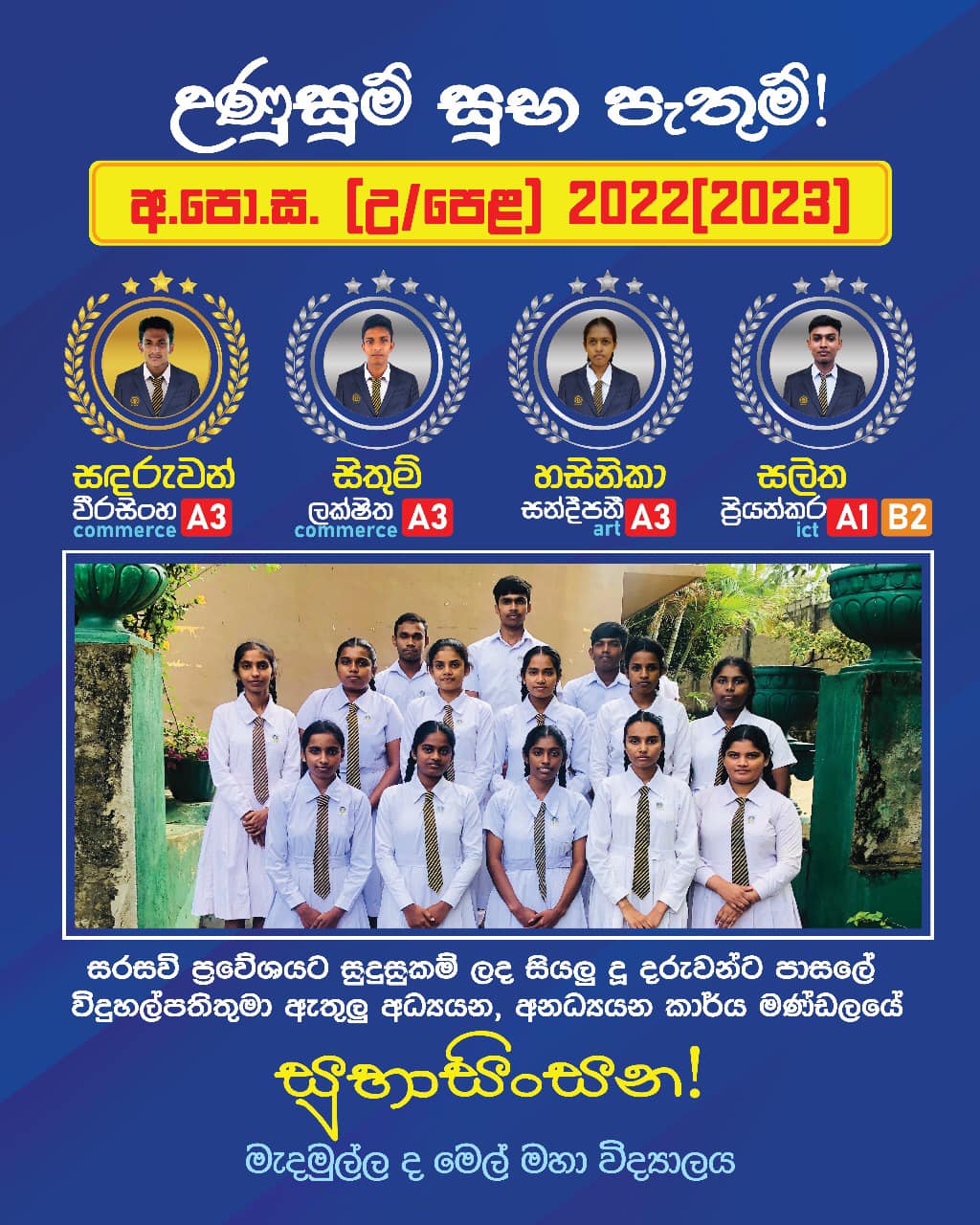 අ.පො.ස.උසස් පෙළ 2022/2023 විශිෂ්ට ප්රතිඵල